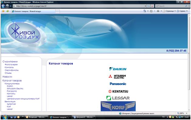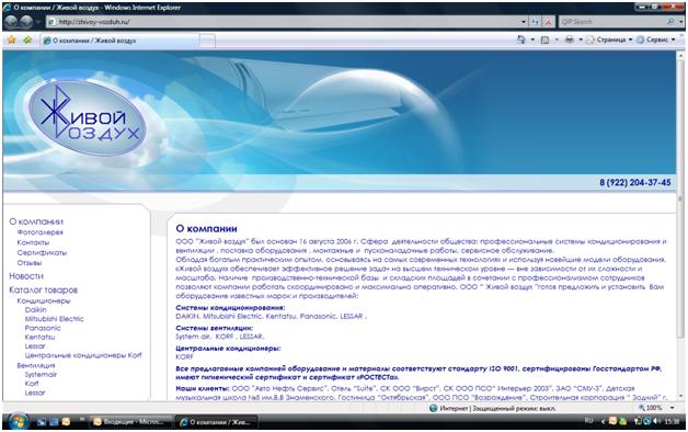 Сайт компании «Живой воздух» www.zhivoy-vozduh.ru Год создания: 2009