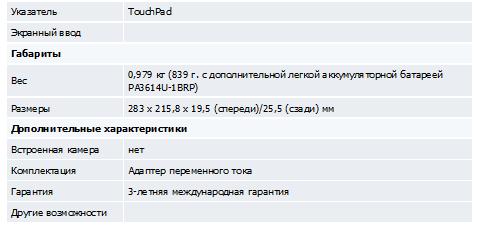 1 - Самый тонкий ноутбук в мире: весит всего 979 г (839 г. с дополнительной легкой аккумуляторной батареей PA3614U-1BRP)