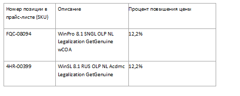 Обновление цен в России на продукты легализации Windows для бизнеса
