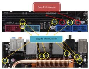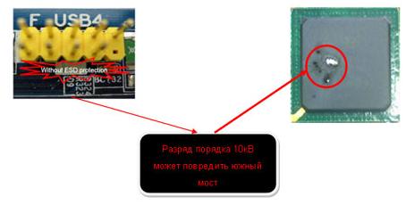 Европейский Союз (EU) первым выдвинул требование тестирования устройств на устойчивость к разрядам статического электричества и установил правила таких тестирований (4 киловольта при непосредственном контакте и 8 киловольт при бесконтактном разряде). В соответствии с этими требованиями и потребностями пользователей компания ASUS создала материнские платы, соответствующие строгим стандартам, применяющимся в Европе, и обеспечивающие надежную защиту от статического электричества во всех узлах системы (ESD-защиту), наиболее подверженных этой проблеме, например, в разъемах USB. Каждый такой порт на материнской плате ASUS имеет специальную защиту от статического разряда, чего нельзя встретить на других платах. Это еще одно свидетельство особенного отношения компании к своим пользователям и того, что она в равной степени заботится обо всех аспектах использования своей продукции. ESD-защита ASUS